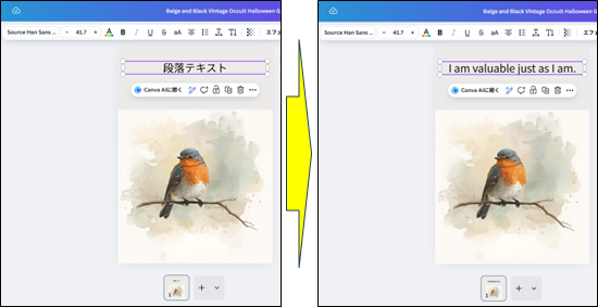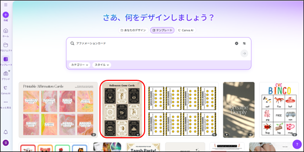 Canvaに用意されているアファメーションカードのテンプレートを使ってカードを作ります。