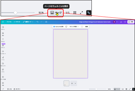 右下の「ページをサムネイル表示」をクリックしておきます。