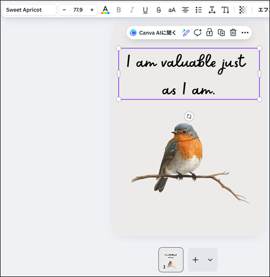 アファメーションカードに記載する「ポジティブな言葉」や「肯定的なメッセージ」は、Canvaに考えてもらいます。