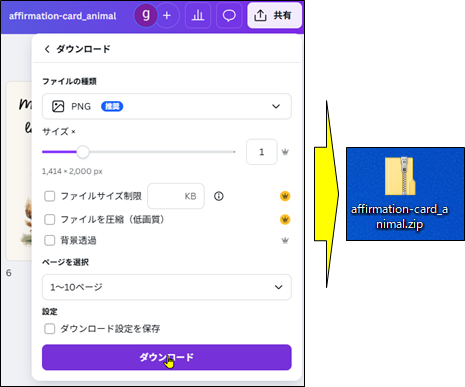 次に、カードに言葉と一緒に掲載するイラストをCanvaで生成します。