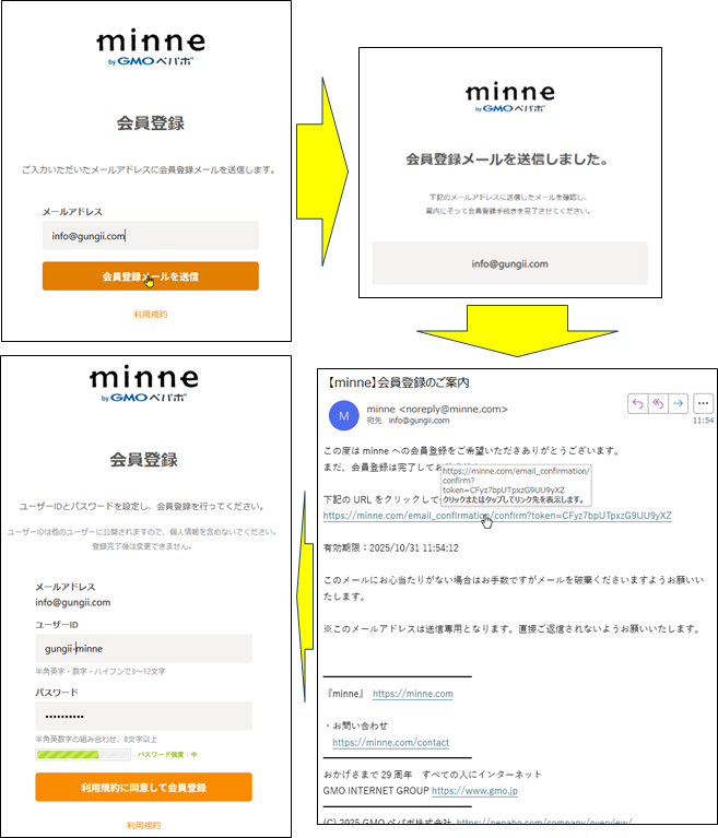 「無料で会員登録する」をクリックしてメールアドレスを入力すると、会員登録メールが送付されますので、それに従って会員登録します。
