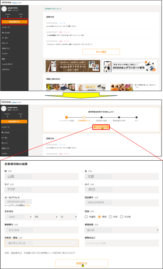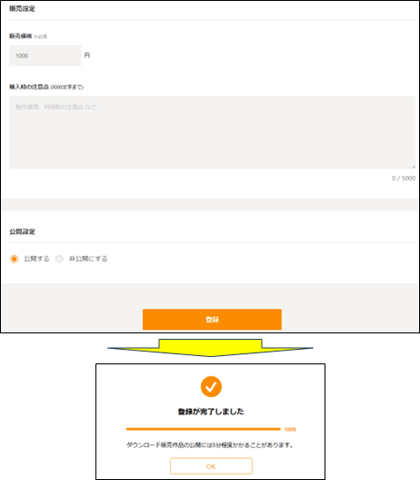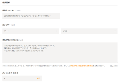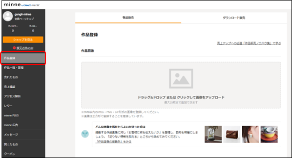 審査が通ると、「作品登録」をクリックすると、作品登録の画面が表示される様になります。