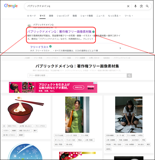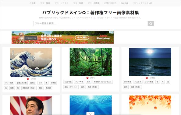 まずは、トートバッグに印刷するイラスト素材を用意します。今回は、著作権の切れたイラストを使用しますので、パブリックドメインQから捜します。