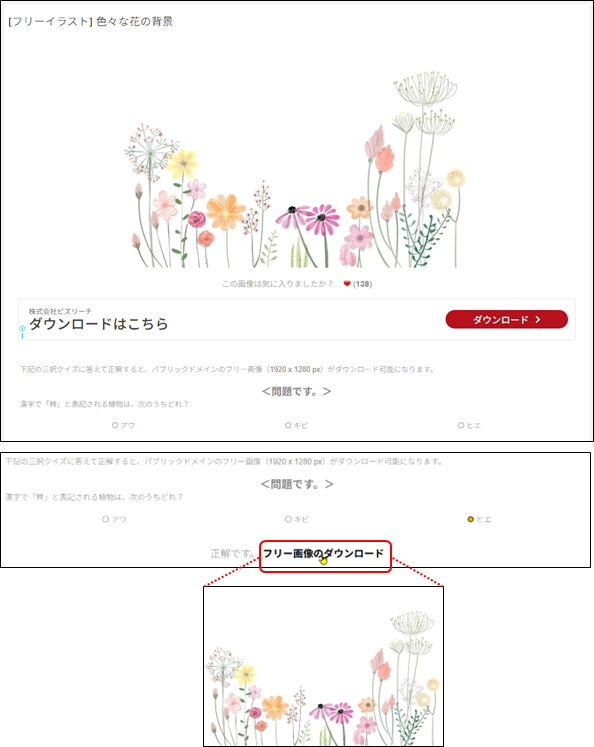 イラストをクリックして、問題を回答すると、ダウンロードできるようになります。