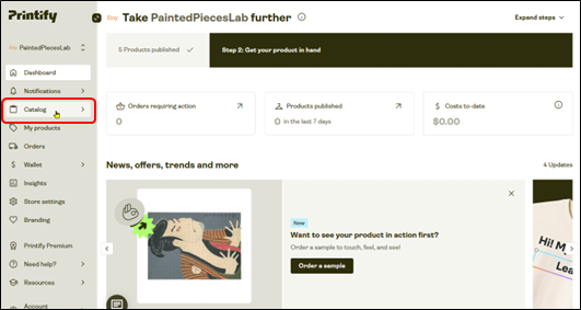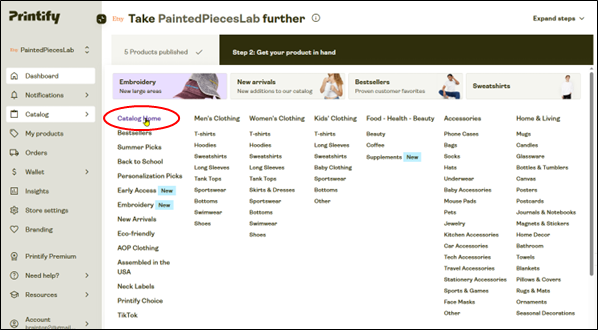 ここでは、追加でトートバッグを作成しますので、「Catalog Home」をクリックします。