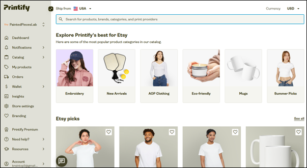 ここまでで、「売れる可能性を持った高解像度デザインデータ」が完成しました。しかし、画像データはあくまで“素材”にすぎません。AIマネタイズとして収益を生むためには、このデータを「商品」という形に変換する工程が必要になります。そこで登場するのが、Printify です。