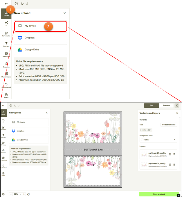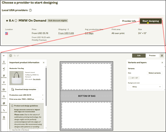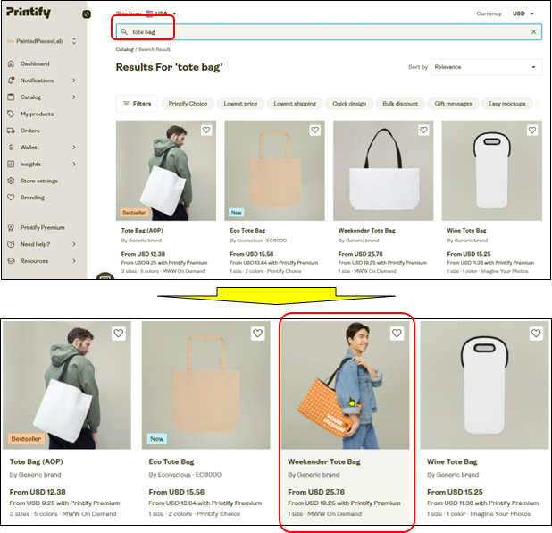 を中心に、実際の画面操作に沿って解説していきます。それでは次に、完成したデザインをPrintifyにアップし、トートバッグとして具現化する工程を見ていきましょう。