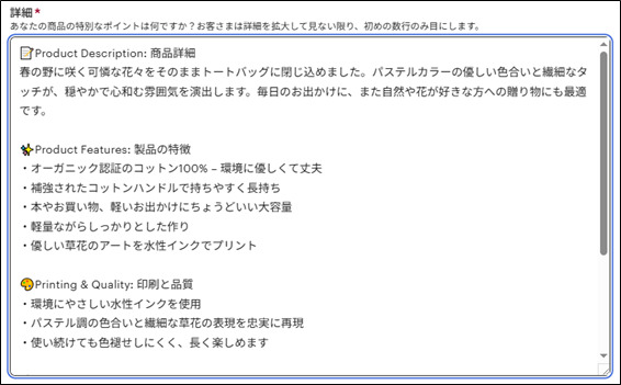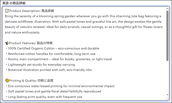 英語の商品詳細の入力
