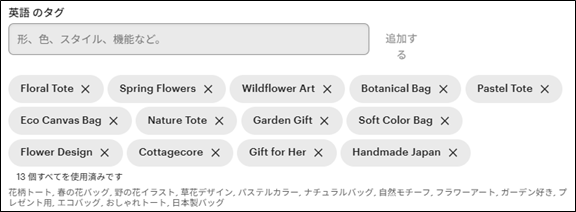 英語のタグの入力
