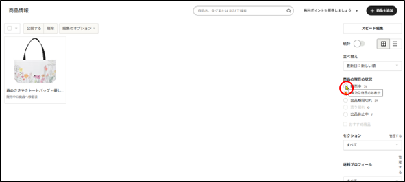 「下書き」をクリックして、下書き中の商品を表示させます。