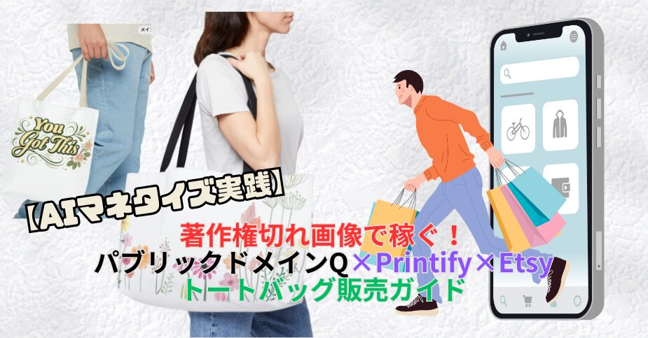 Printifyを使えば、在庫を持たず、初期費用をかけることなく、このデザインをトートバッグという物理商品としてすぐに形にすることができます。しかも、印刷・縫製・発送まですべて自動化されるため、私たちが行うのは「画像をアップロードして配置するだけ」。AIとPODの組み合わせが、個人でも“回るマネタイズ”を可能にします。