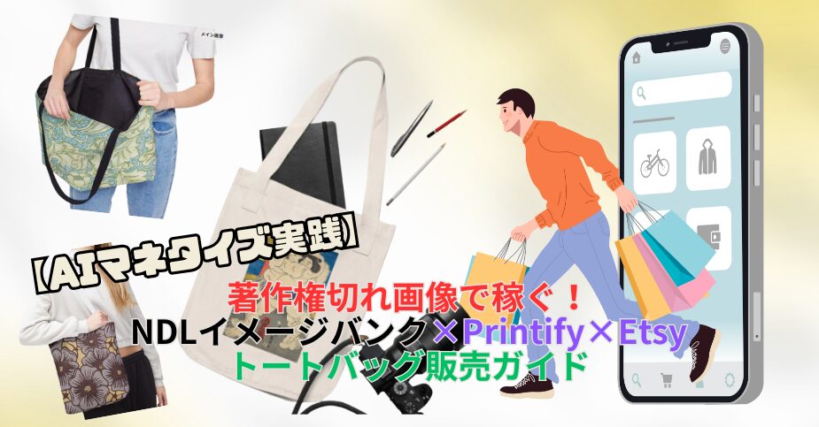 そこで本記事では、著作権が切れた安全な画像を使いながら、AIと無料ツールを組み合わせて、トートバッグを商品化・販売する方法を、初心者の方にも分かりやすく解説します。使用するのは、