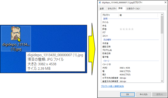 ダウンロードした画像の解像度が300dpiになっていることを確認します。