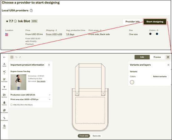 - Printifyによるトートバッグ制作