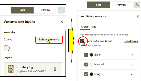 「Select variants」をクリックして、✓を入れ、バリエーションの指定をします。