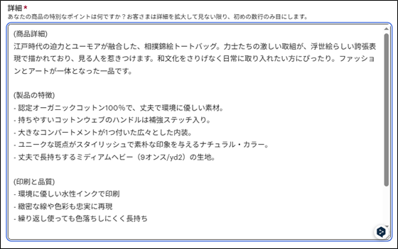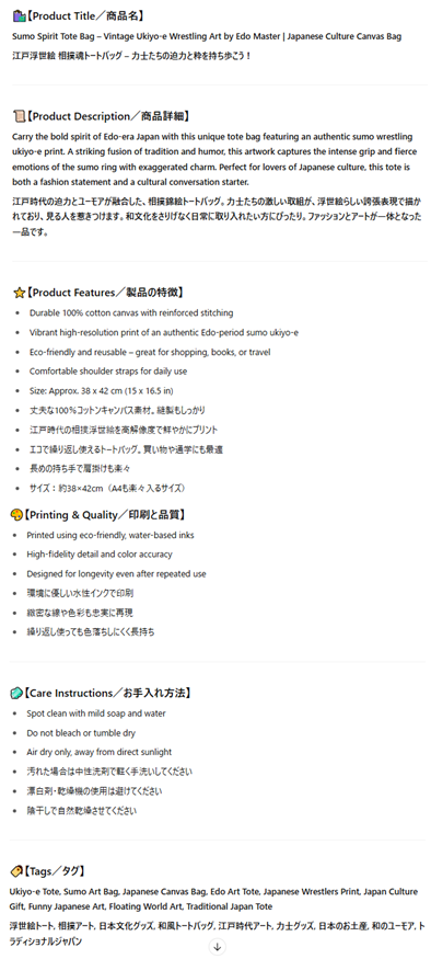 ChatGPT提案のタイトル、商品詳細