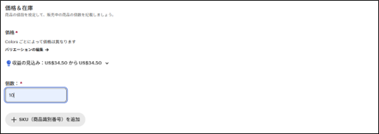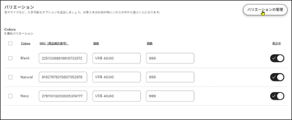 価格、在庫数などを調整します。