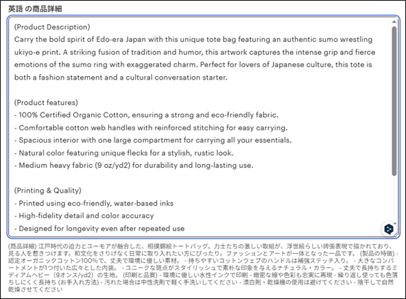 英語の商品詳細の入力