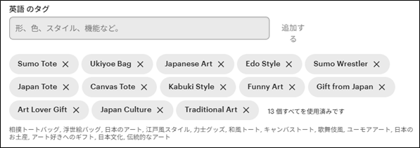 英語のタグの入力