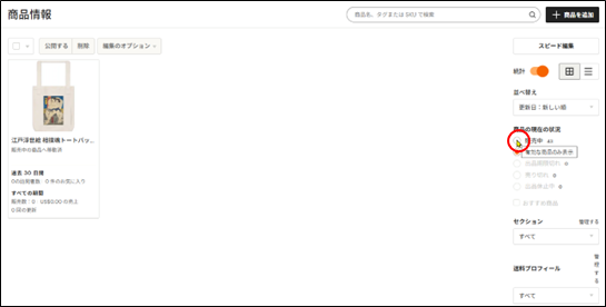 「販売中」にフラグ変更